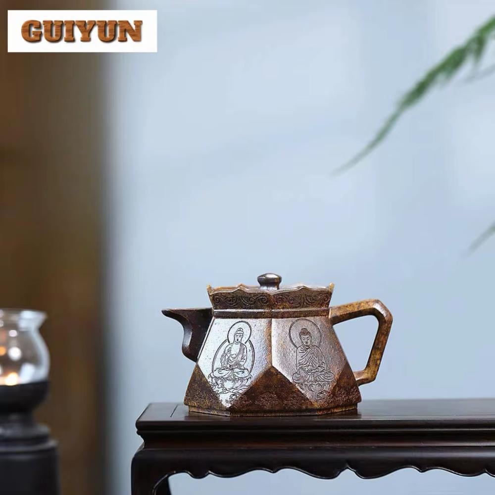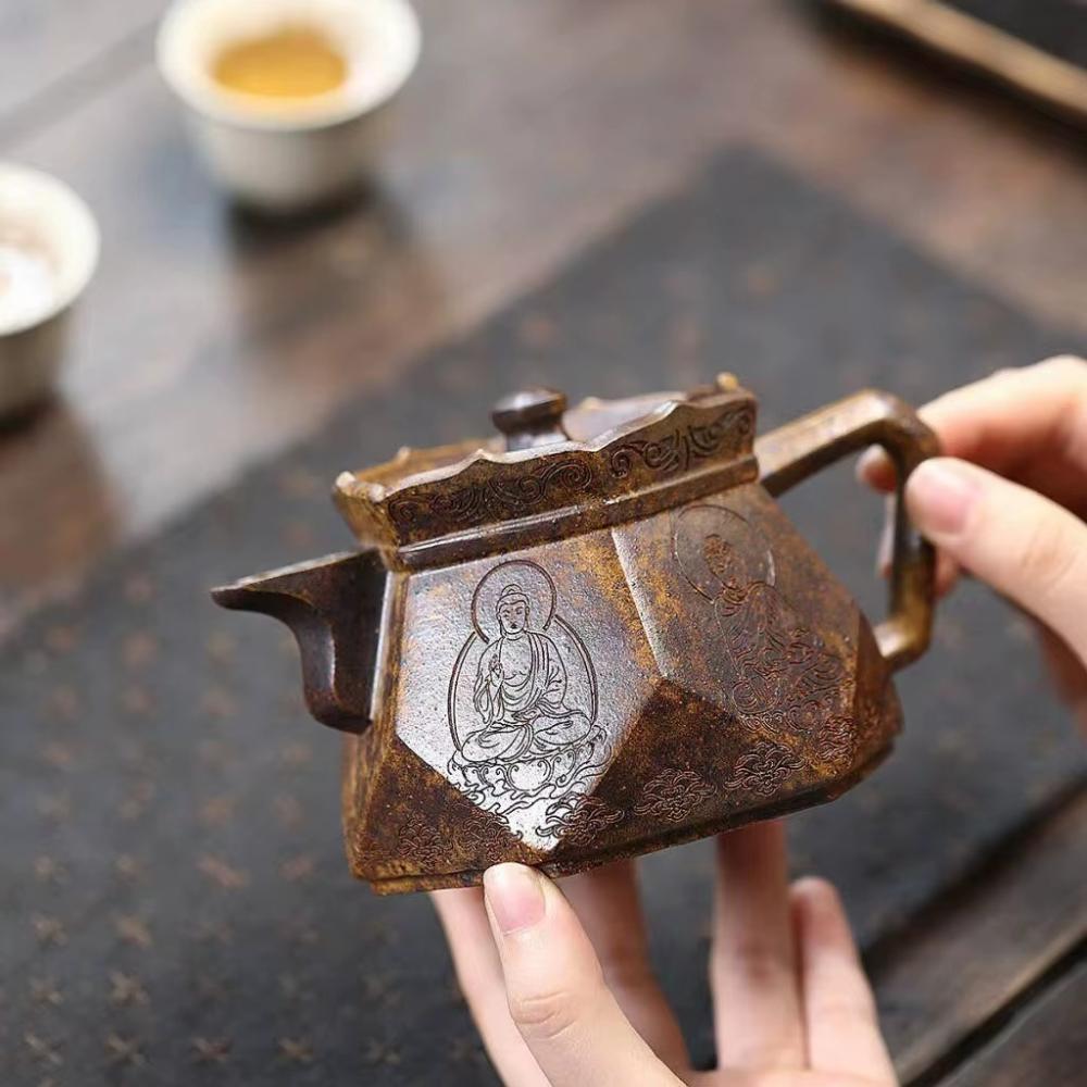إبريق شاي يدوي من طين ييشينغ الأرجواني بتصميم فاخر
