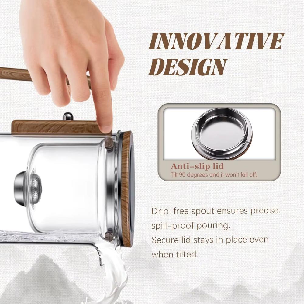 - اسم المنتج: افضل براد شاي غلاية زجاجية إبريق الشاي مع مقبض خشبي