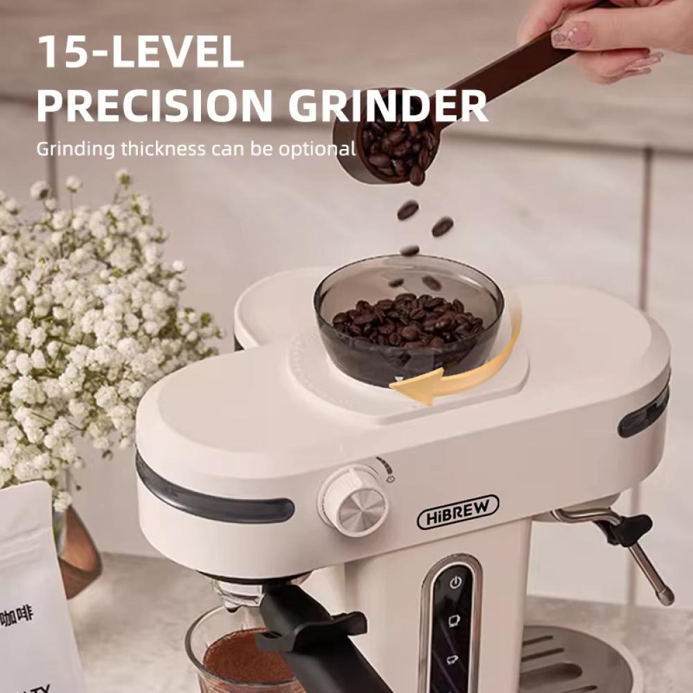 ماكينة قهوة اسبريسو HiBREW مع مطحنة حبوب ونظام تبخير الحليب