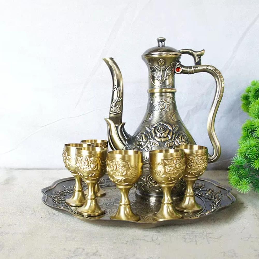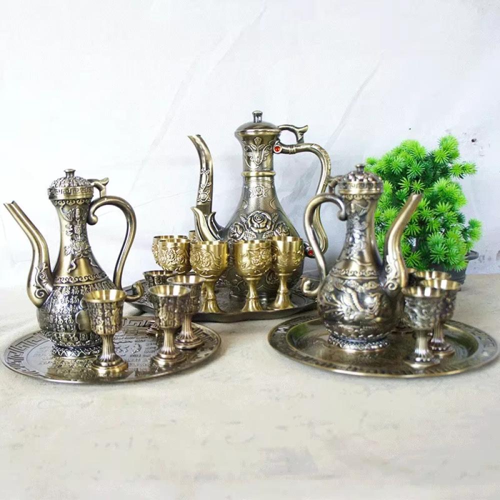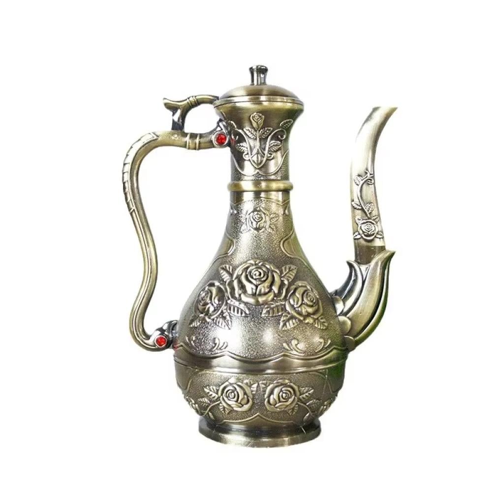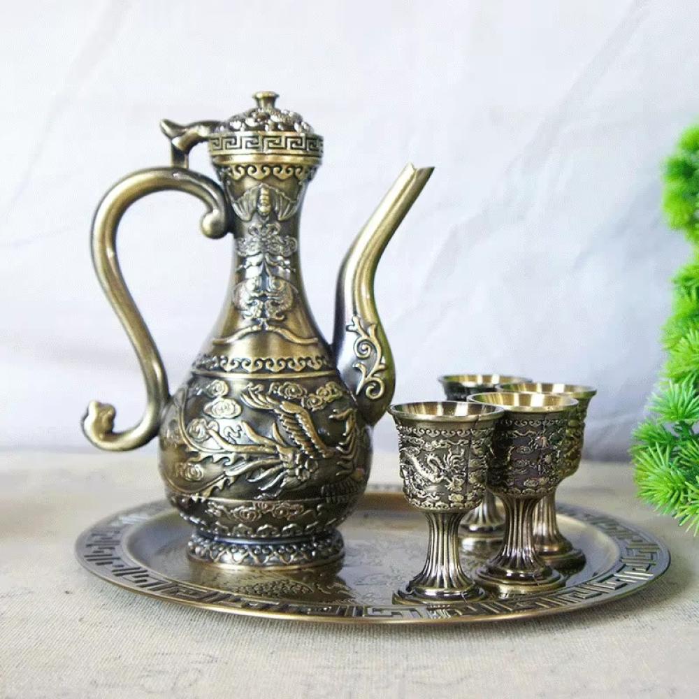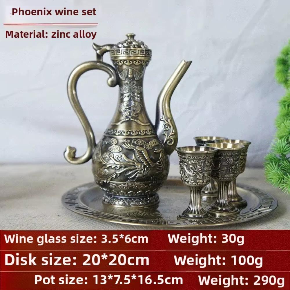 طقم شاي معدني مزخرف بتصميم التنين والفينيق للديكور والضيافة