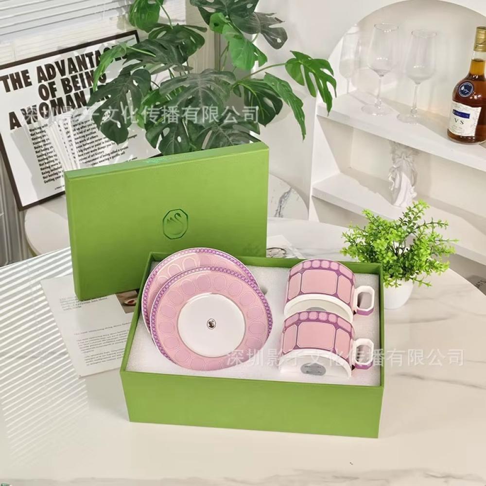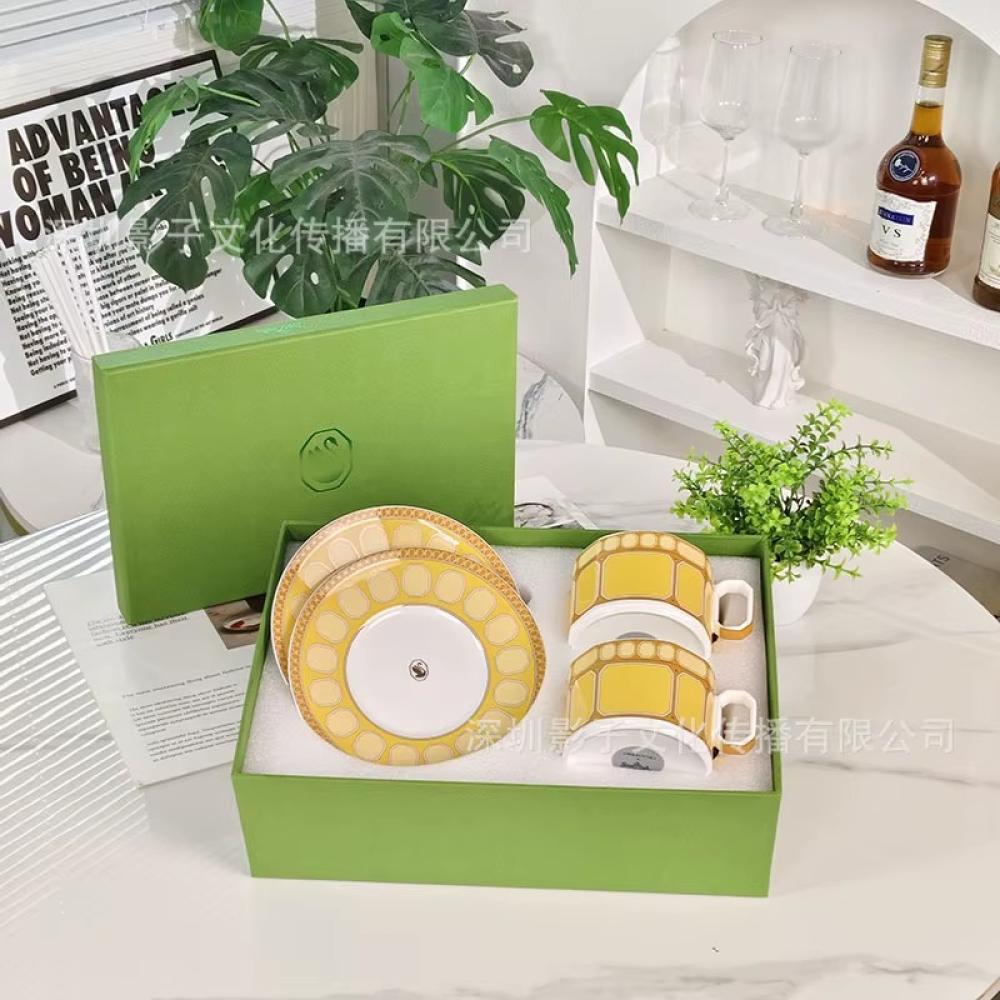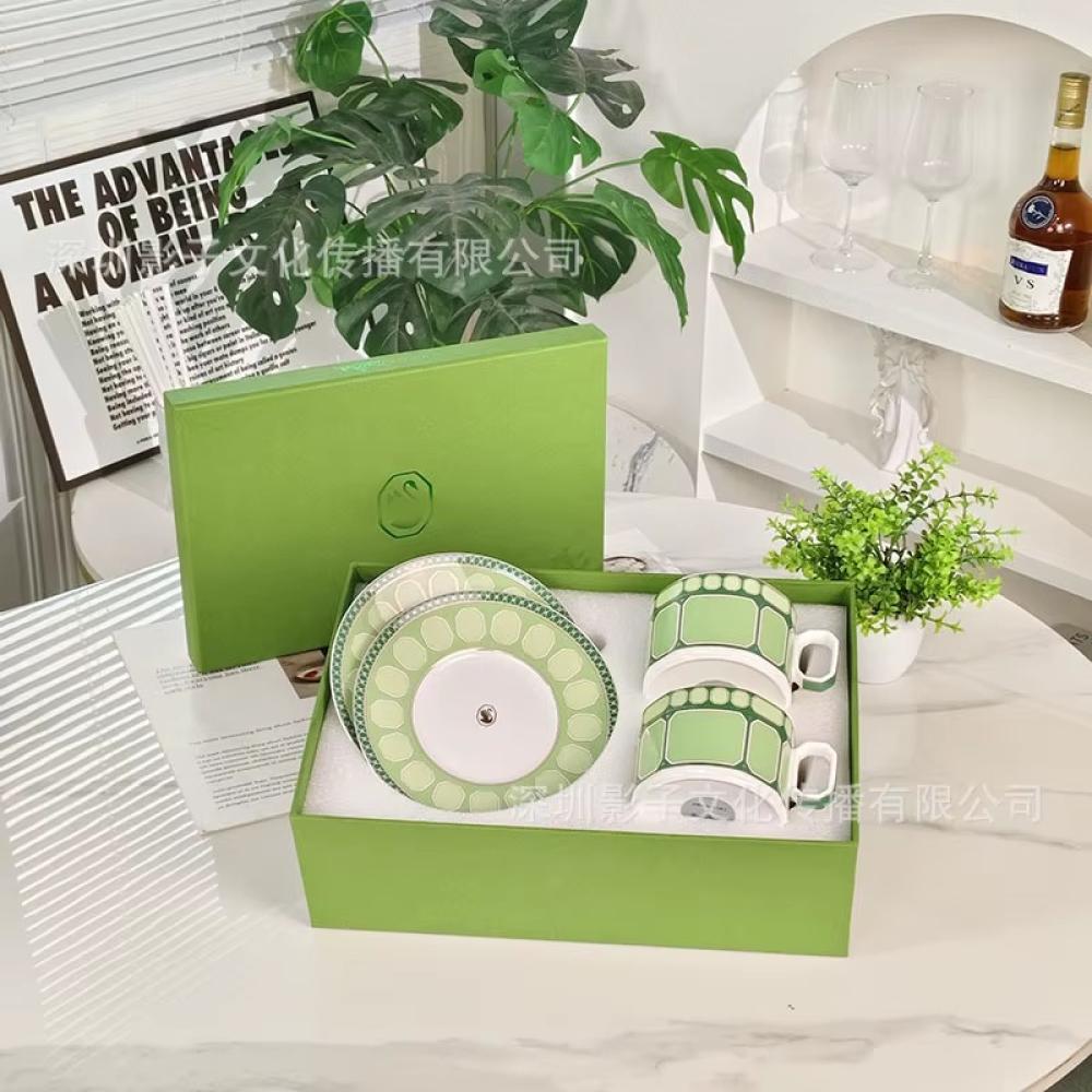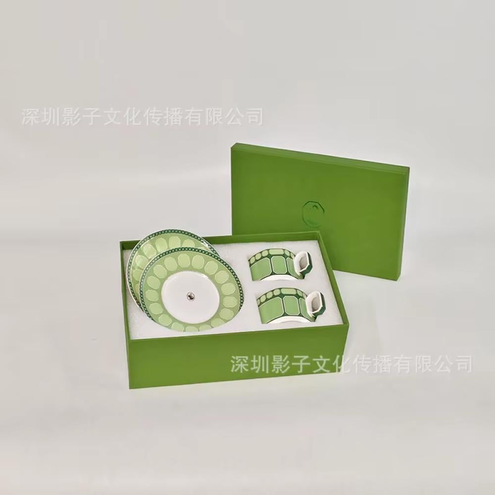 طقم فناجين شاي أوروبي فاخر من بورسلان العظام بتصميم أنيق