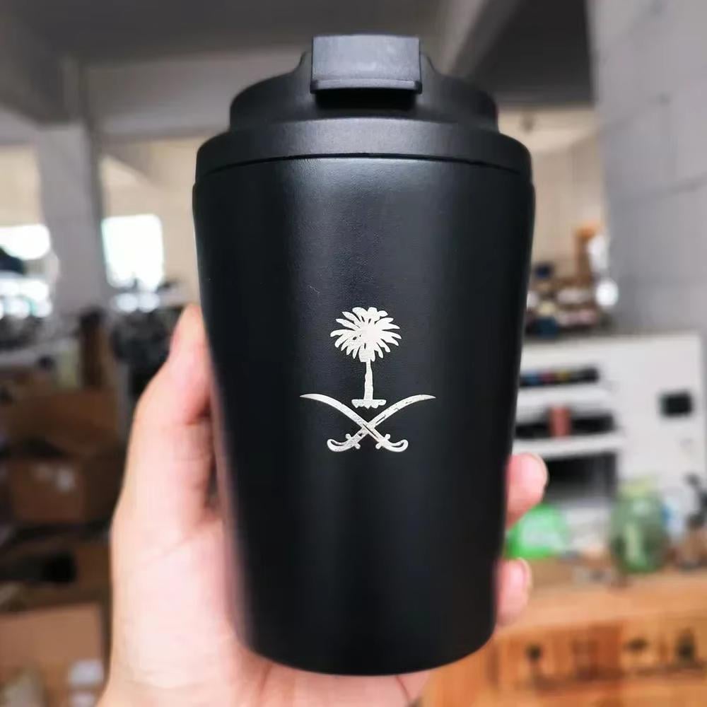 - الاسم: كوب ستانلس ستيل مع غطاء وشعار المملكة