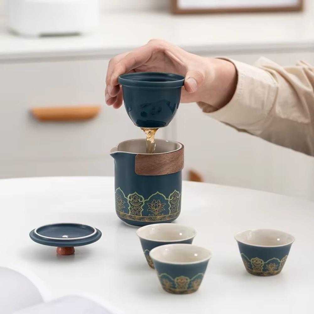 معدات شاي محمول للتخييم والسفر مصمم خصيصًا لعشاق الشاي في الهواء الطلق يجمع بين الراحة والأداء العملي في تصميم مدمج وسهل الحمل مثالي للرحلات والنزهات والتخييم بفضل وزنه الخفيف ومكوناته المتكاملة يشمل وعاء واحد لتحضير الشاي وثلاثة أكواب صغيرة بالإضافة إلى كوب سريع للاستخدام الفردي من متجر takwah .